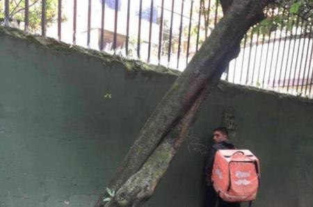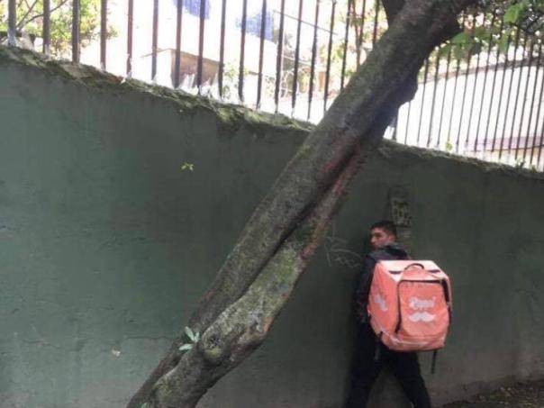 Y lo hizo con fotos y videos. En algunas imágenes se ve a un rappitendero orinando en una pared con su maletín a cuestas que es el mismo lugar en donde transportan la comida que llevan a los usuarios.