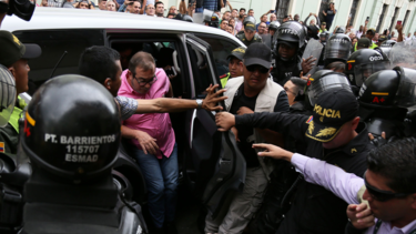 También estaba, con megáfono en mano, Gustavo Adolfo Muñoz, director de la Fundación Nueva Esperanza, quien fue detenido en 2013 y luego pidió perdón ante la Corte Suprema por participar en un cartel de falsos testigos contra el senador Luis Fernando Velasco, a quien llegó a acusar de colaborador de la guerrilla.