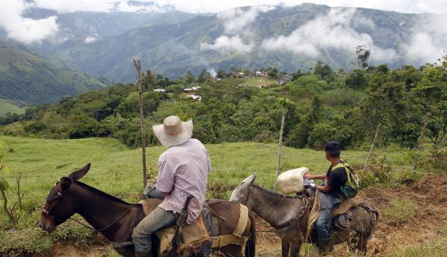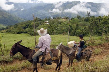 Los caminos, trazados por los mismos campesinos, son estrechos, pantanosos y espesos, tanto que las mulas se ranchan y, a veces, se enloquecen y toman otra ruta. “Hace décadas nos están prometiendo una vía y ahora estamos hasta sin caminos para mover la comidita. Se acabaron por causa de las lluvias y los derrumbes, traemos las cosas con mucha brega”, describe Rosalba.