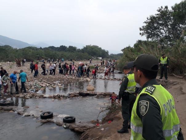Policía Nacional custodia las trochas Los Mangos y La Isla, por donde se registra el mayor flujo irregular de migrantes entre Colombia y Venezuela. Foto: Policía Nacional