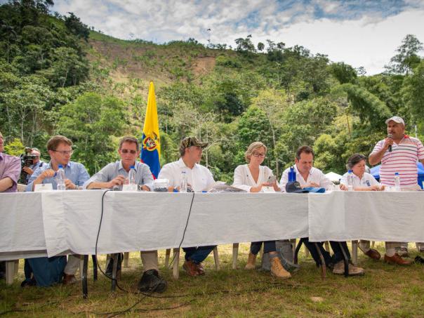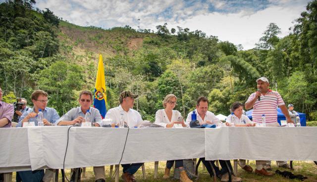 Duque escuchó a los excombatientes que viven en el ETCR de Miravalle. Foto: Presidencia