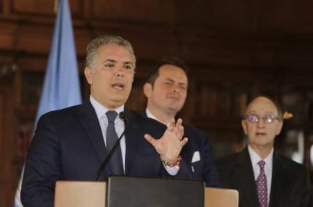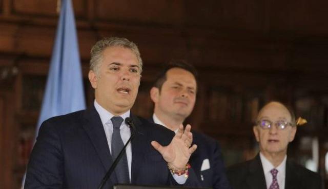 El presidente Iván Duque dio una declaración con los miembros de la ONU en la sede de la Cancillería. Foto: @MisionONUCol