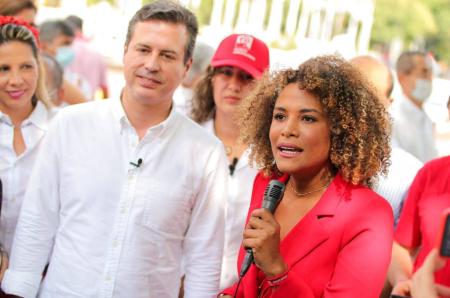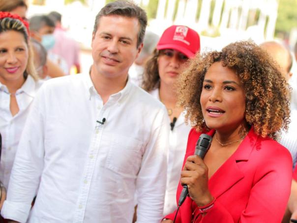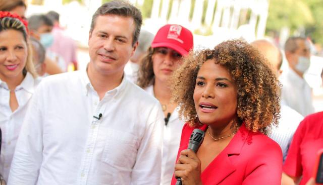 Juan Manuel Galán con Mabel Lara en su tercera parada en Valle del Cauca. Foto: Prensa Nuevo Liberalismo